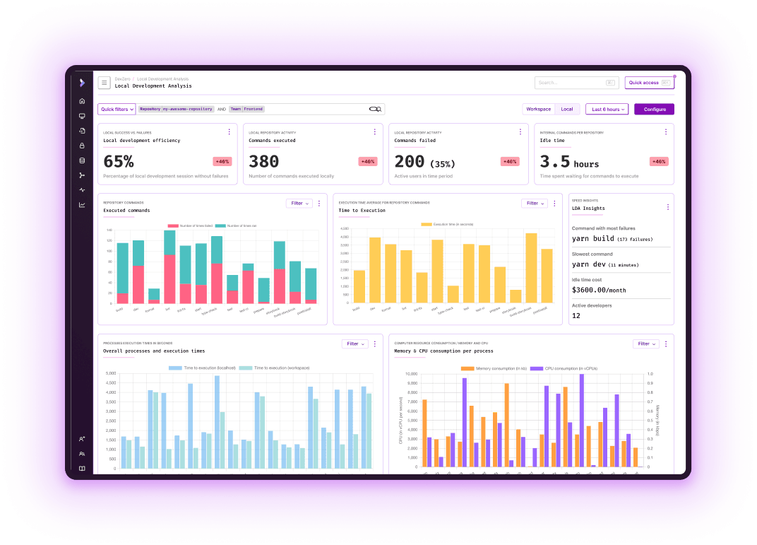 Uber developed Local Developer Analytics (LDA) to bridge this gap, a tool highlighting the granular issues within developer workflows. Today, DevZero furthers this concept with Open Developer Analytics (ODA). This open-source solution empowers engineering teams to identify and resolve bottlenecks with real-time, actionable data and seamless integration into managed developer workspaces.