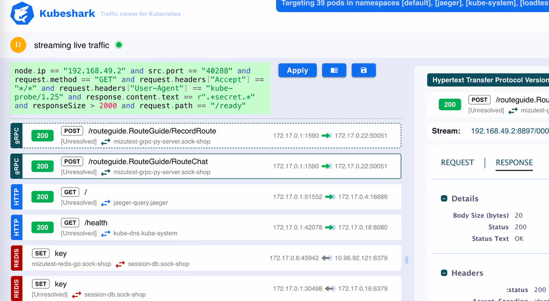 Debugging Kubernetes nodes is a nightmare. The amount of information is vast and the granularity isn’t great. Kubeshark is an API traffic analyzer for Kubernetes providing real-time K8s protocol-level visibility, capturing and monitoring all traffic and payloads going in, out and across containers, pods, nodes and clusters.