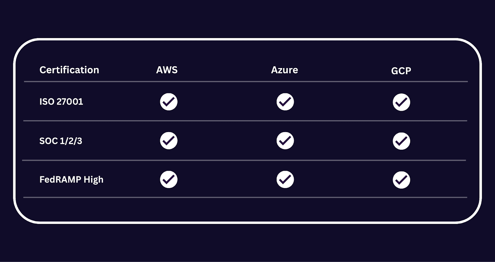 All three cloud platforms meet top-tier security certifications:
