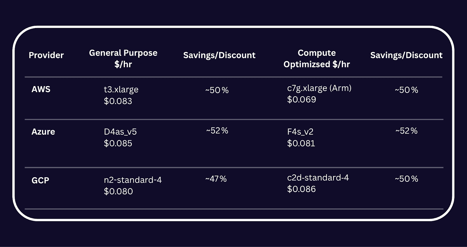 Compute-Optimized Instance Pricing (4 vCPU, 8 GB RAM)#