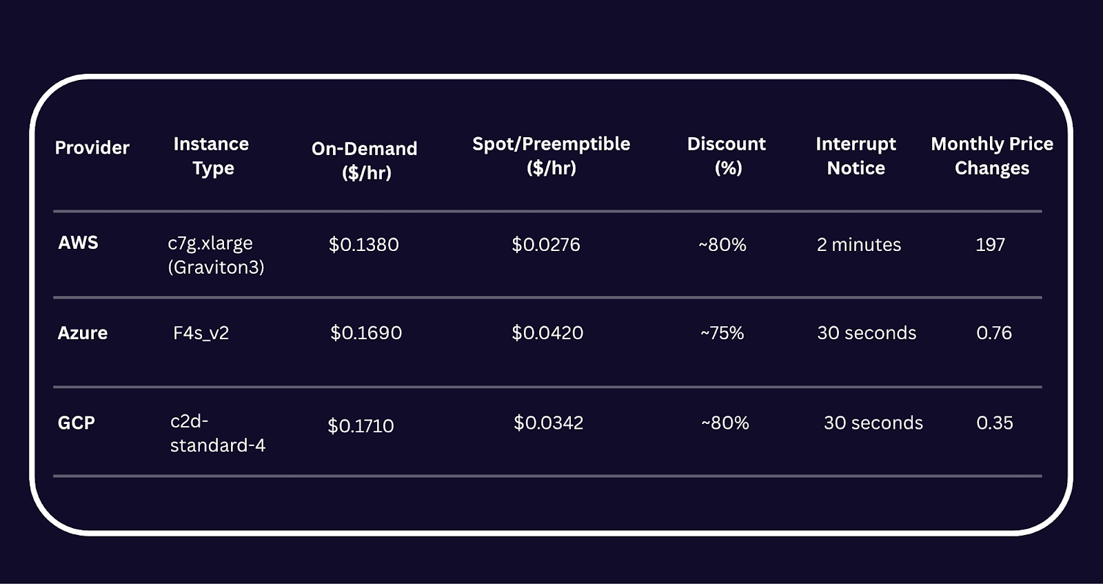 AWS, Azure, GCP Price Comparison: Spot Instances and Preemptible VMs#
