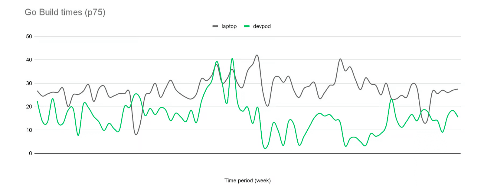 Figure 1: 1.8x improvement over laptops for average builds (in seconds)