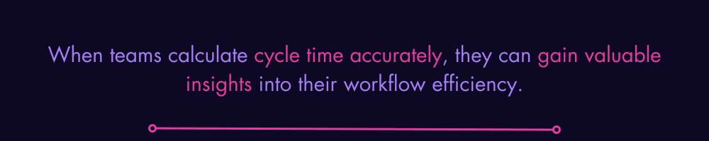 Calculating cycle time is a straightforward process that involves tracking the time it takes for individual work items to progress through the development pipeline. When teams calculate cycle time accurately, they can gain valuable insights into their workflow efficiency. In the process, they can identify areas for improvement.