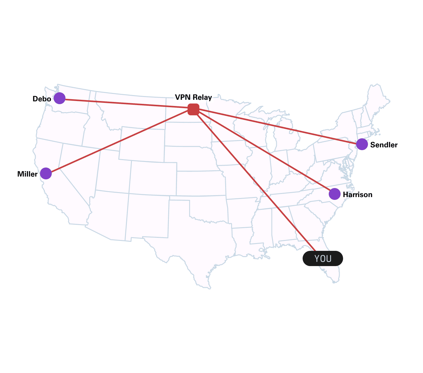 You might’ve seen in our graphic above that we connect everyone together in somewhat of an unconventional way - hence why we call it a mesh network. Instead of a ‘hub-and-spoke’ system, where you have one central VPN server which allows you to connect to everyone else, we directly connect you to your teammates, avoiding an unnecessary extra hop.
